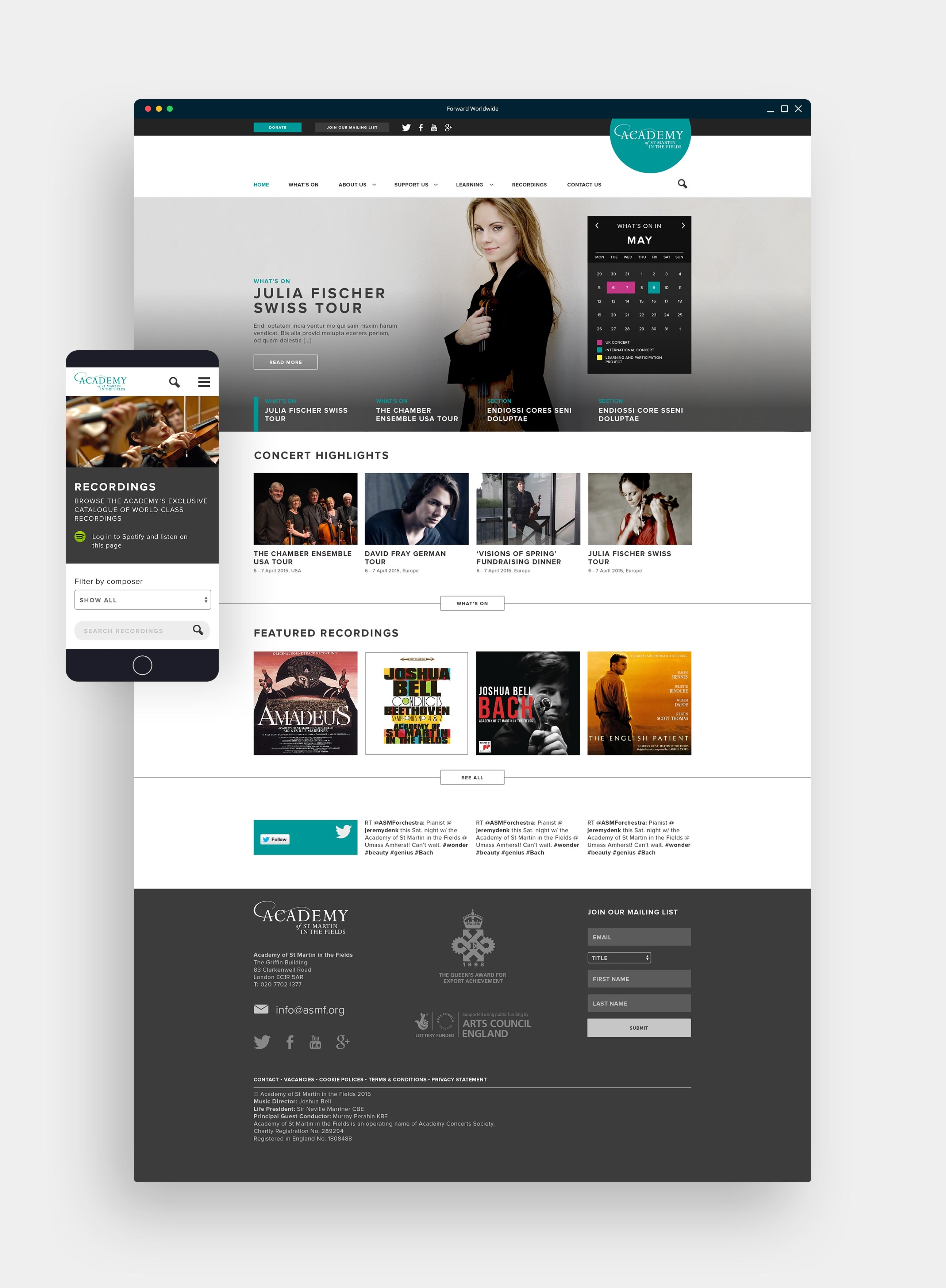 A site for The Academy of St Martin in the Fields orchestra. The project involved IA, wireframing, UI design and prototyping stages.