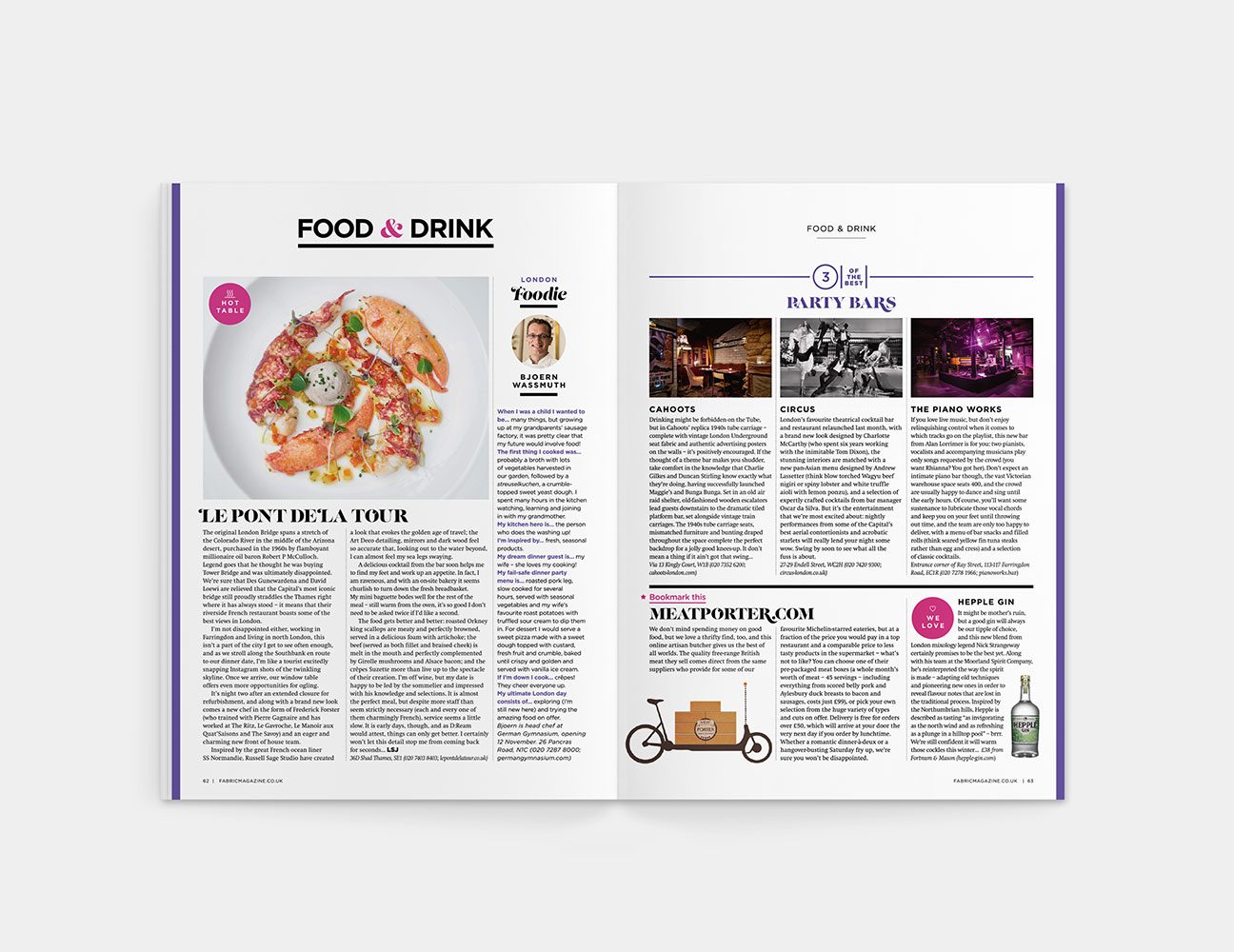 Published on the web and in print, Fabric is a lifestyle and entertainment magazine aimed at affluent Londoners.