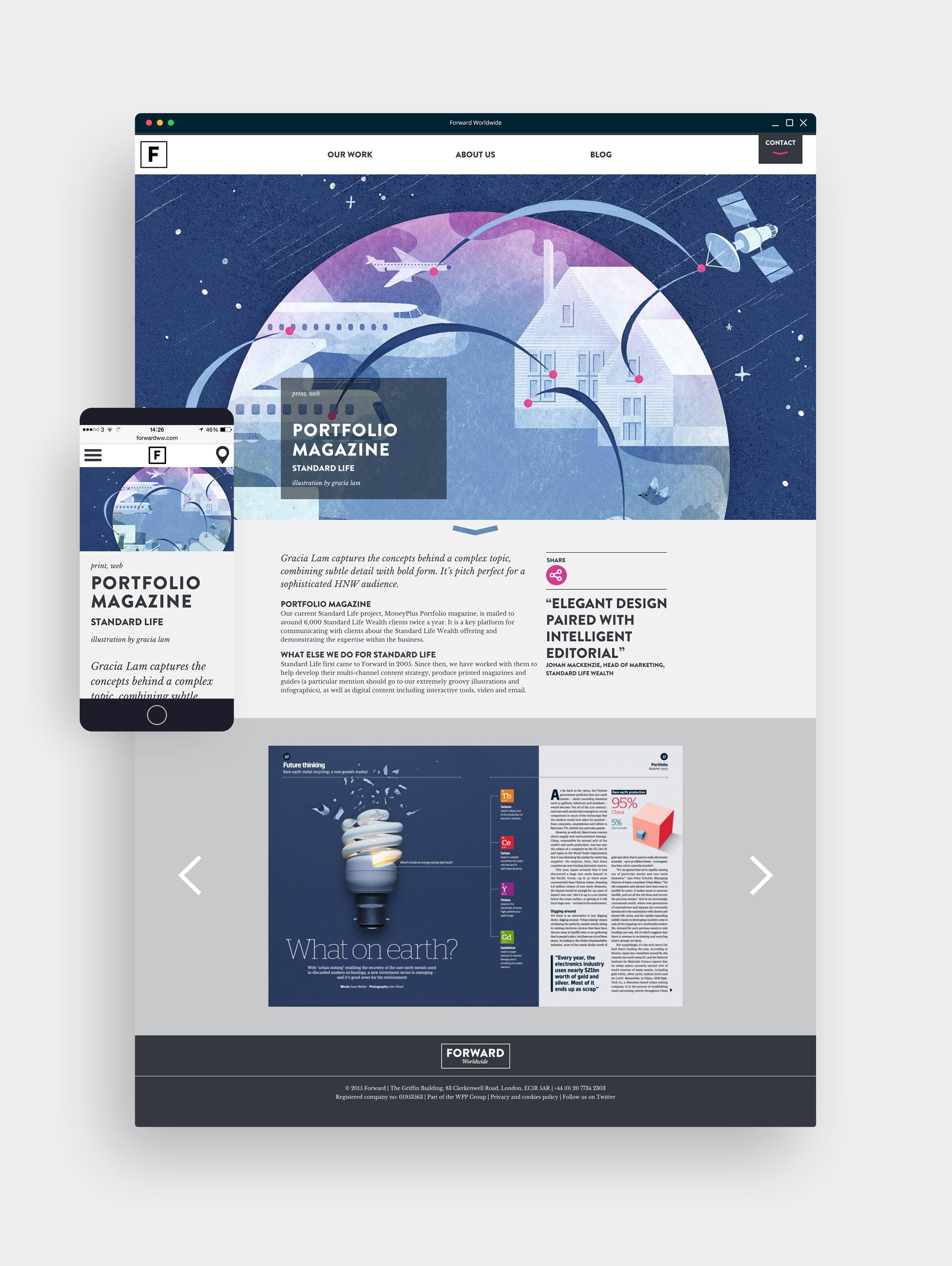 Forward’s site showcasing their portfolio, with client testimonials, blog content and credentials.